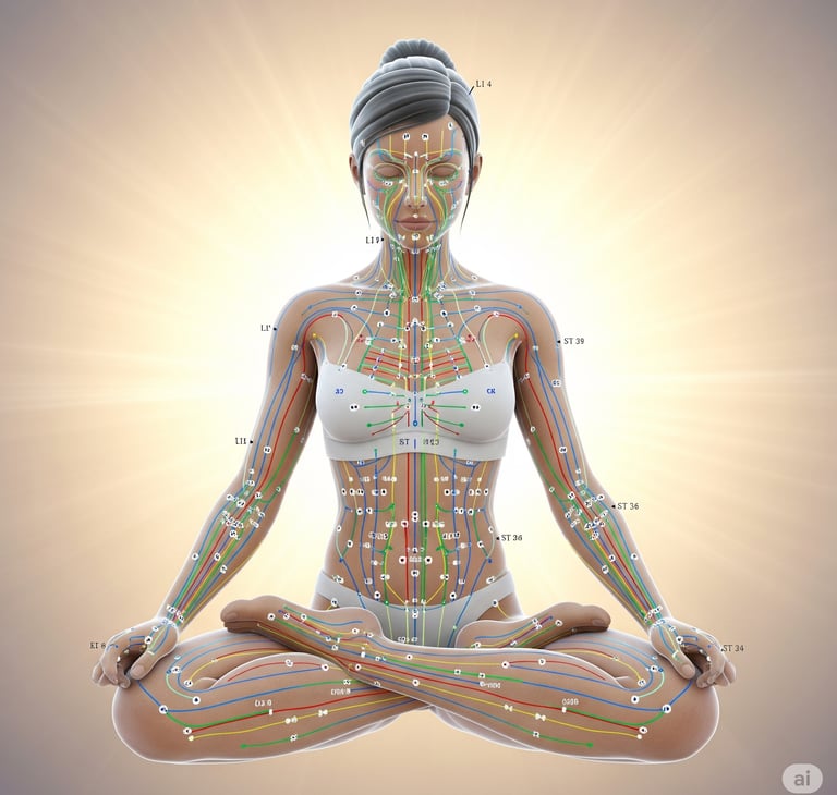 Notoriamente questi punti sono localizzati lungo canali energetici (meridiani) attraverso cui fluisce l'energia vitale, chiamata "Qi".